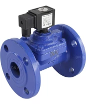 Клапан электромагнитный DN.ru VS610-NF-NC-220VAC Ду40 Ру10, соленоидный двухходовой, корпус - чугун, уплотнение - NBR, фланцевый, нормально-закрытый, пилотный, катушка - 220В