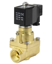Клапан электромагнитный DN.ru VS1000-PT-NC-220VAC 1″ Ду25 Ру16 соленоидный двухходовой поршневой, резьбовой, корпус - латунь, уплотнение - PTFE, пилотного действия, нормально закрытый, катушка - 220В AC