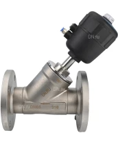Клапан отсечной пневматический DN.ru VSP3241P-F-1PNC Ду65 Ру16, корпус - нержавеющая сталь SS316, фланцевый, Y-образный, корпус привода - пластик с сертификатами качества. Доставка. Гарантия. В наличии! Звоните!
