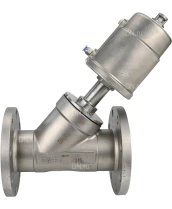 Клапан отсечной пневматический DN.ru VSP3232PV-F-1PNC Ду100 Ру16, корпус - нержавеющая сталь SS316, фланцевый, Y-образный, корпус привода - нержавеющая сталь CF8M с сертификатами качества. Доставка. Гарантия. В наличии! Звоните!