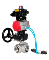Кран шаровой DN.ru BV3232P(4pc)-SP-3WL-T-ISO-H Ду15 Ру63, стандартнопроходной, нержавеющая сталь 316, уплотнение - PTFE, внутренняя резьба, с пневмоприводом PA-DA-052, пневмораспределителем 4V320-10 220В, БКВ APL-410N Ex, ручным дублером MON1-250-T26-ISO с сертификатами качества. Доставка. Гарантия. В наличии! Звоните!