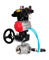 Кран шаровой DN.ru BV3232P(4pc)-SP-3WL-T-ISO-H Ду32 Ру63, стандартнопроходной, нержавеющая сталь 316, PTFE, внутренняя резьба, с пневмоприводом PA-DA-052, пн.распределителем 4V320-10 220В, БКВ APL-410N Ex, ручным дублером MON1-250-T26-ISO, БПВ AFC2000