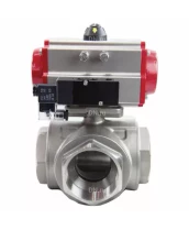 Кран шаровой DN.ru BV3232P(4pc)-SP-3WL-T-ISO-H Ду15 Ру63, стандартнопроходной, четырехсоставной, корпус - нержавеющая сталь 316, уплотнение - PTFE, внутренняя резьба, с пневмоприводом PA-SA-052 двойного действия, пневмораспределителем 4V320-10 220В с сертификатами качества. Доставка. Гарантия. В наличии! Звоните!