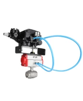 Кран шаровой DN.ru BV3232P(2pc)-FP-T-ISO-H Ду15 Ру63, полнопроходной внутренняя резьба, нержавеющая сталь SS316, уплотнение - PTFE, с пневмоприводом PA-DA-052 двойного действия и с электропневматическим поворотным позиционером YT-1000RSN с обратной связью