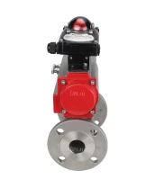 Кран шаровой DN.ru BV3131P(3pc)-FP-F-ISO-H Ду20 Ру40 трехсоставной из нержавеющей стали SS304, фланцевый, уплотнение - PTFE, полнопроходной с пневмоприводом DN.ru PA-DA-052 и БКВ APL-210N