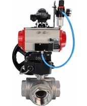 Кран шаровой DN.ru BV3232P(4pc)-SP-3WL-T-ISO-H Ду65 Ру40 стандартнопроходной 3-ходовой L-тип, нерж. сталь SS316, внутренняя резьба, PTFE, пн.привод PA-DA-083, пн.распределит 4М310-08 220В NAMUR, БКВ APL-210N, ручным дублером MON2-450-T28-ISO и БПВ AFC2000