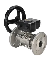 Кран шаровой DN.ru BV3131P(3pc)-FP-F-ISO-H Ду40 Ру40 трехсоставной из нержавеющей стали SS304, фланцевый, уплотнение - PTFE, полнопроходной с ISO-фланцем и редуктором DN.ru HAM RQN1-180Z-T40 с сертификатами качества. Доставка. Гарантия. В наличии! Звоните!