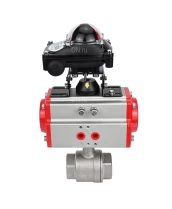 Кран шаровой DN.ru BV3232P(2pc)-FP-T-ISO-H 3/4″ Ду20 Ру63 полнопроходной двухходовой, нержавеющая сталь SS316, внутренняя резьба, уплотнение - PTFE, с пневмоприводом двойного действия DN.ru PA-DA-52 и БКВ APL-210N