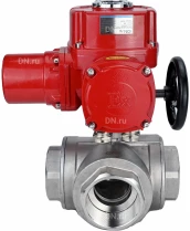 Кран шаровой DN.ru BV3232P(4pc)-SP-3WL-T-ISO-H Ду10 Ру63 стандартнопроходной трехходовой L-тип, нержавеющая сталь SS316, внутренняя резьба, уплотнение - PTFE, с 1/4-оборотным электроприводом DN.ru QT-EX-005M-O2-380VAC-У1 с сертификатами качества. Доставка. Гарантия. В наличии! Звоните!