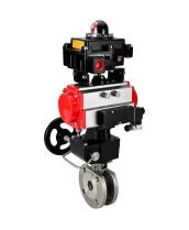 Кран шаровой DN.ru BV3232P-FP-Fb-ISO-H Ду100 Ру16, полнопроходной межфланцевый, нержавеющая сталь SS316, PTFE, с пневмоприводом PA-DA-105 двойного действия, с пневмораспределителем 4М310-08 220В NAMUR, с БКВ APL-410N EX, с ручным дублером MON3-700-T38-ISO Краснодар