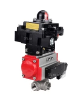 Кран шаровой DN.ru BV3232P(4pc)-SP-3WL-T-ISO-H Ду10 Ру63 стандартнопроходной трехходовой L-тип, нержавеющая сталь SS316, внутренняя резьба, PTFE, пн.приводом PA-DA-052, пн.распределителем 4М310-08 220В NAMUR и БКВ APL-410N EX