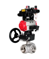 Кран шаровой DN.ru BV3232P(4pc)-SP-3WL-T-ISO-H Ду10 Ру63 стандартнопроходной 3-ходовой L-тип, нерж.сталь SS316, внутренняя резьба, PTFE, пн.привод PA-DA-052, пн.распределит 4М310-08 220В NAMUR, БКВ APL-410N EX, ручной дублер MON1-250-T26-ISO и БПВ AFC2000