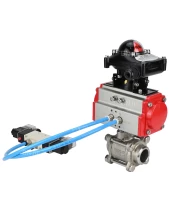 Кран шаровой DN.ru BV3232P(3pc)-FP-W-ISO-H Ду25 Ру63, полнопроходной под приварку, нержавеющая сталь SS316, уплотнение - PTFE, с пневмоприводом PA-DA-052 двойного действия, с пневмораспределителем 4V320-08 220В, с БКВ APL-210N
