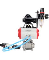 Кран шаровой DN.ru BV3232P(3pc)-FP-W-ISO-H Ду15 Ру63, полнопроходной под приварку, нержавеющая сталь SS316, уплотнение - PTFE, с пневмоприводом PA-DA-052 двойного действия, с пневмораспределителем 4V320-08 220В, с БКВ APL-210N, с БПВ AFC2000