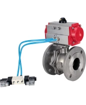 Кран шаровой DN.ru BV3232P(2pc)-FP-F-ISO-H Ду15 Ру40, полнопроходной фланцевый, нержавеющая сталь SS316, уплотнение - PTFE, с пневмоприводом PA-DA-052 двойного действия, с пневмораспределителем 4V320-10 220В