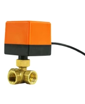 Кран шаровой DN.ru BV0030NP-SP-3L-T-ED Ду15 Ру16 стандартнопроходной, L-тип, трехходовой, латунь, внутренняя резьба, уплотнение - нитриловый каучук / PTFE, с электроприводом 220В без концевых выключателей