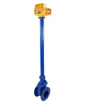 Задвижка клиновая 30ч939р (аналог МЗВ) DN.ru GVWN1414E-2W-F Ду100 Ру16 фланцевая, клин - обрезиненный, с ISO-фланцем, круглым штоком, с колонкой управления F10 (ОСТ тип А, Б) L=1500, электроприводом DN.ru MT-N-010EM-O1-380VAC-У1 380В, цвет - синий с сертификатами качества. Доставка. Гарантия. В наличии! Звоните!