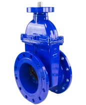 Задвижка клиновая 30ч939р (аналог МЗВ) DN.ru GVWN1414E-2W-F Ду200 Ру10 двусторонняя, фланцевая, клин - обрезиненный, шпиндель - невыдвижной, корпус - чугун, уплотнение - EPDM, с голым штоком, цвет - синий