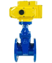 Задвижка клиновая 30ч939р (аналог МЗВ) DN.ru GVWN1414E-2W-F Ду100 Ру16 фланцевая, клин - обрезиненный, шпиндель - невыдвижной, корпус - чугун GGG-50, уплотнение - EPDM, с электроприводом DN.ru MT-N-010EM-O1-220VAC-У1 220В, цвет- синий
