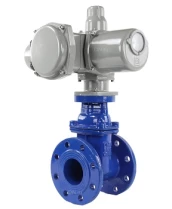 Задвижка клиновая 30ч939р (аналог МЗВ) DN.ru Ду200 Ру10 двусторонняя, фланцевая, клин - обрезиненный, шпиндель - невыдвижной, корпус - чугун, уплотнение - EPDM, с электроприводом ГЗ-Б.200/18, 220В, цвет - синий